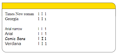 De hier getoonde lettertypes zijn 11-punts. De eerste twee lettertypes hebben een schreef. Zoek de verschillen tussen de letter l [el], hoofdletter I [ie] en het cijfer 1 [één].